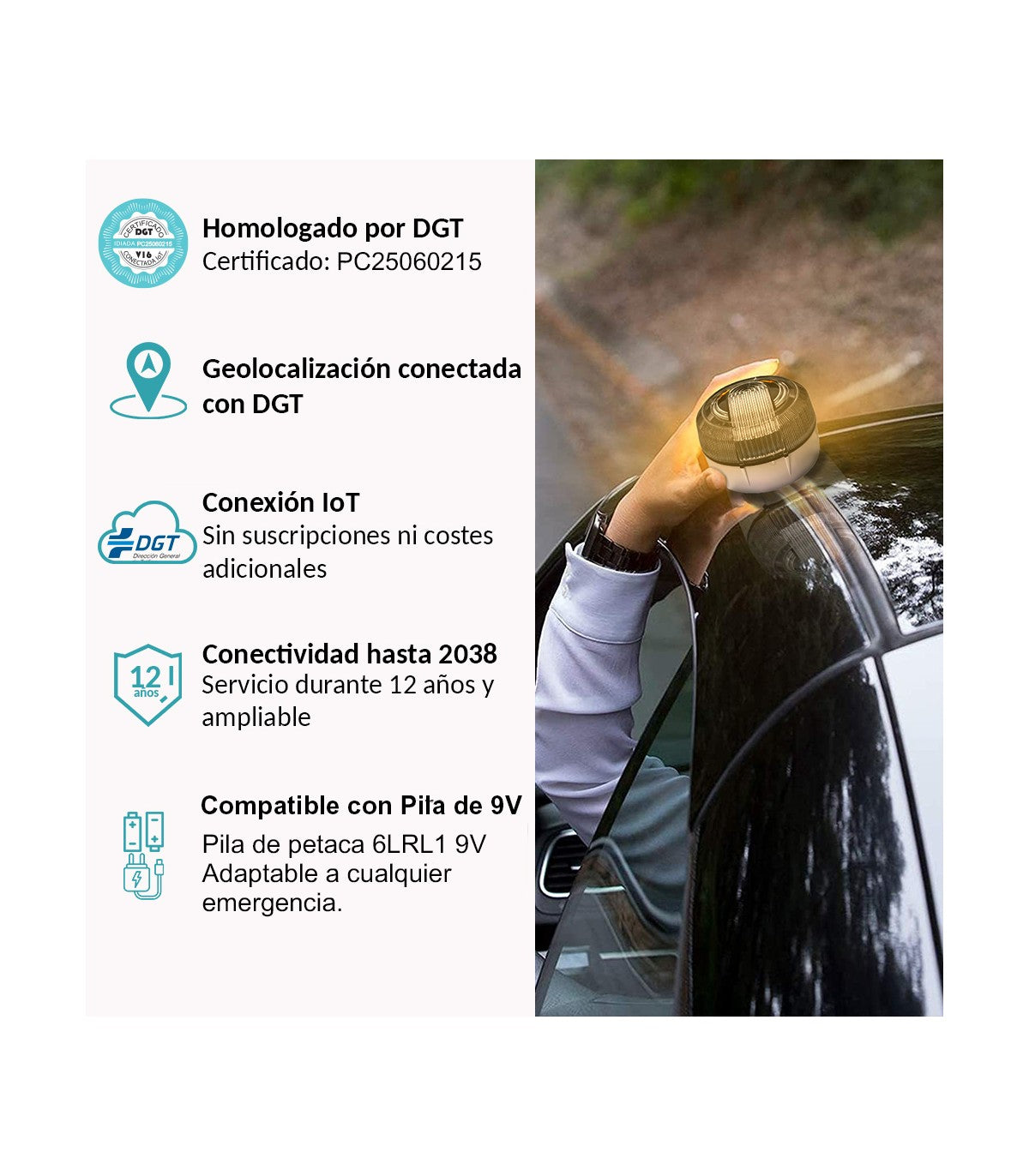 La principal diferencia con BalizaPRO es que cuenta con certificado de homologación con la DGT, SIM única hasta 2038 que se conecta automáticamente con los sistemas de la DGT en caso de accidente para avisar a los demás usuarios.